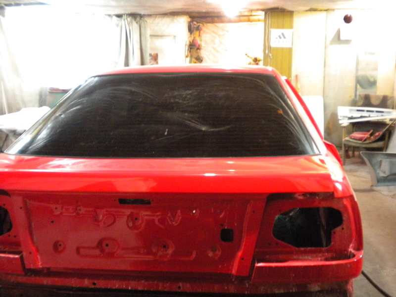 После сварочных работ на крышке багажника, подготовке и подгонке изготовленного обвеса, приступили к покраске.