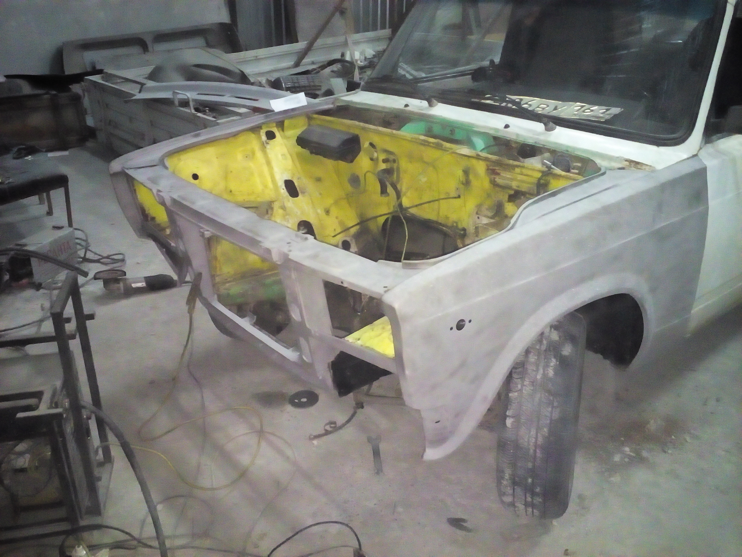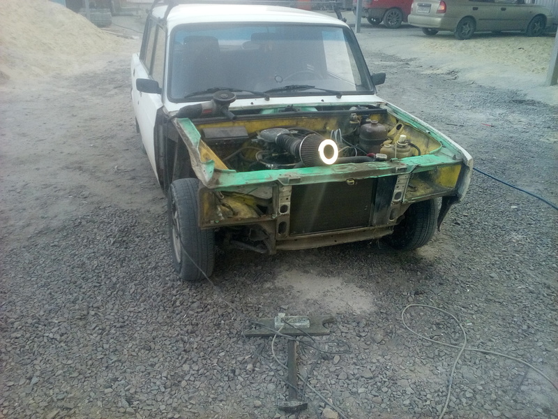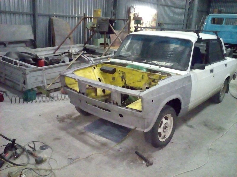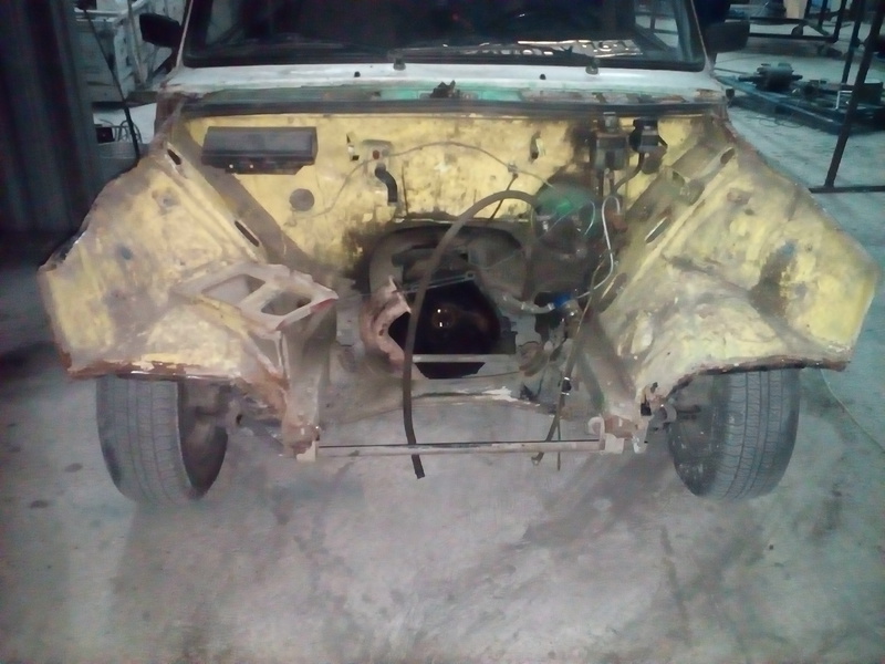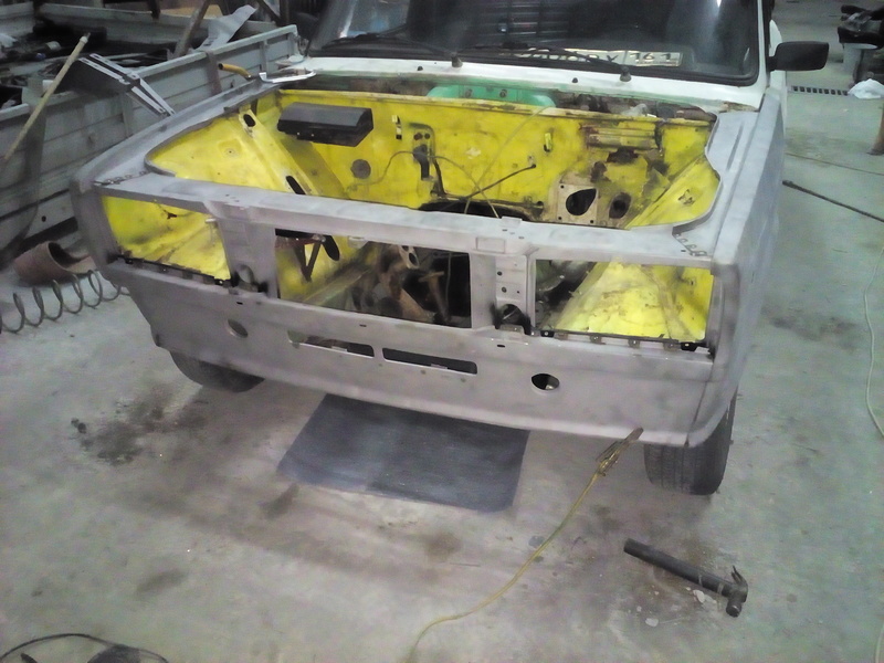 Решил заменить пластмассовое крыло на металлическое и тут понеслось. Было заменено крыло правое и левое фартук и телевизор.Попутно покрасил опостылевшую подкапотку которая была желтой. Бывший хозяин наивно полагал что с желтым моторным отсеком она будет быстрей,но чудес не бывает.Вообщем приводим поджопник в порядок)))