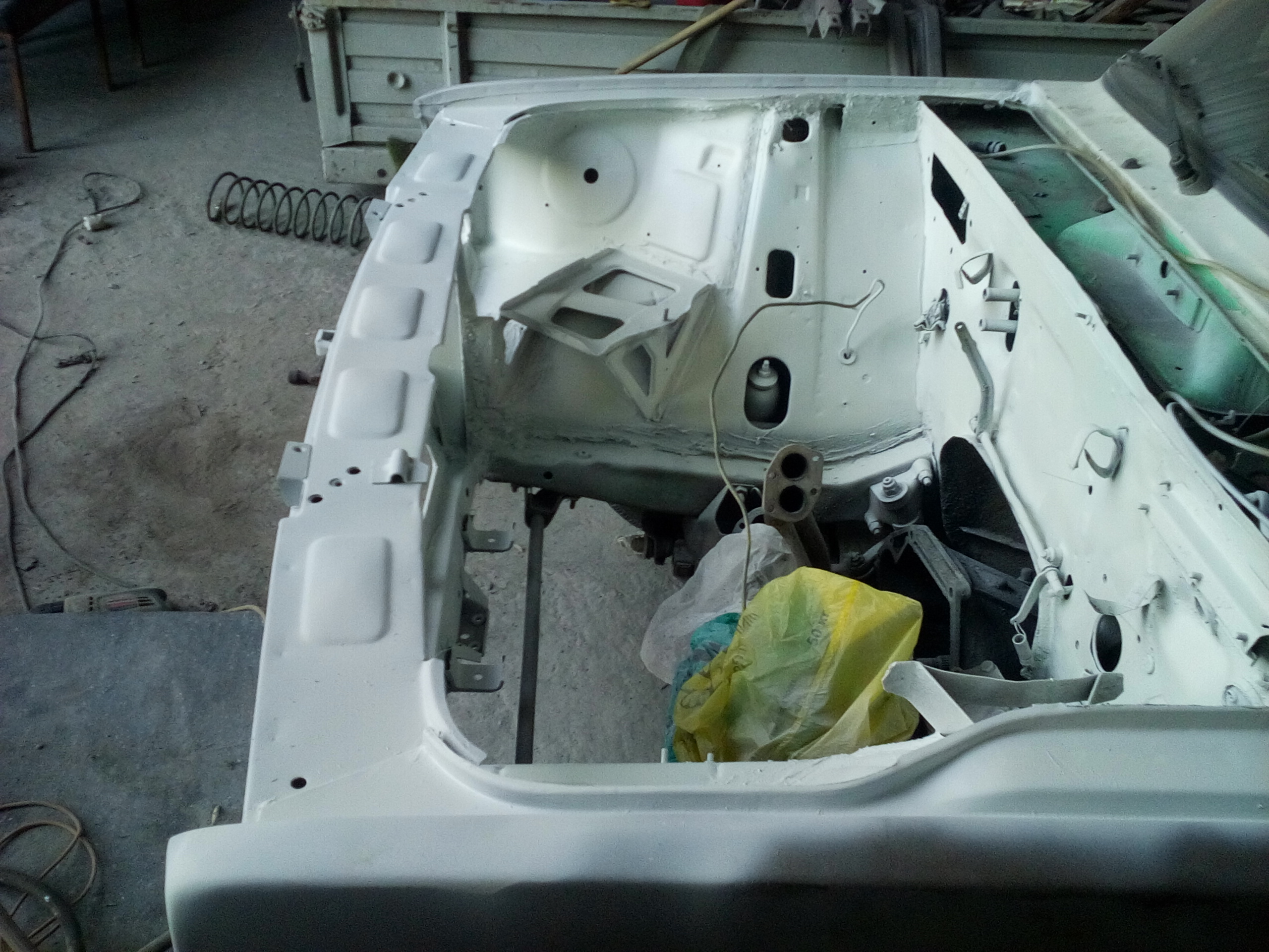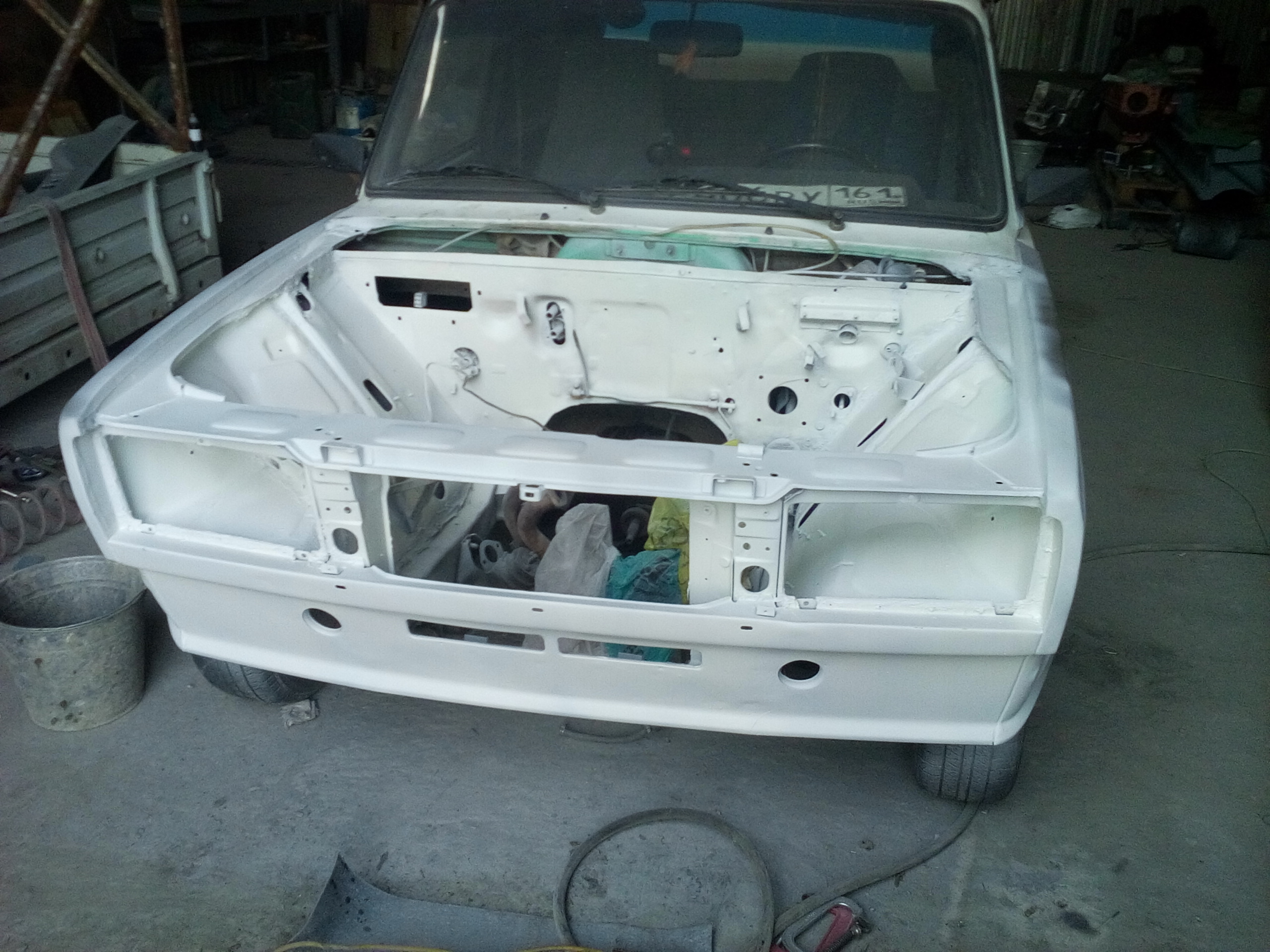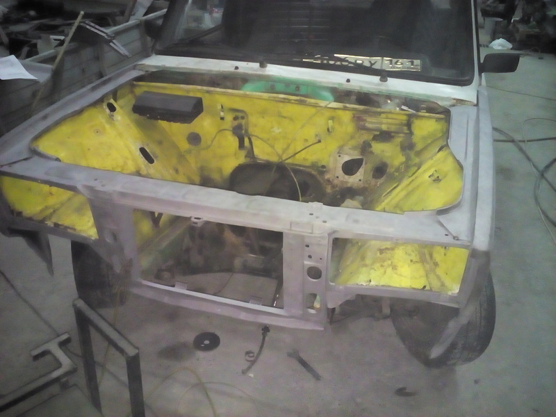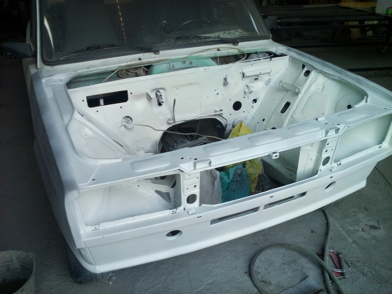 Решил заменить пластмассовое крыло на металлическое и тут понеслось. Было заменено крыло правое и левое фартук и телевизор.Попутно покрасил опостылевшую подкапотку которая была желтой. Бывший хозяин наивно полагал что с желтым моторным отсеком она будет быстрей,но чудес не бывает.Вообщем приводим поджопник в порядок)))