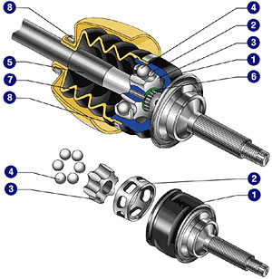 Устройство довольно простое - между внутренней обоймой, совмещенной с полуосью, и наружной, закрепленной на ступице, бегают стальные шарики в сепараторе. То есть это как бы обычный шарикоподшипник, но вращающийся не вдоль своей оси, а поперек.