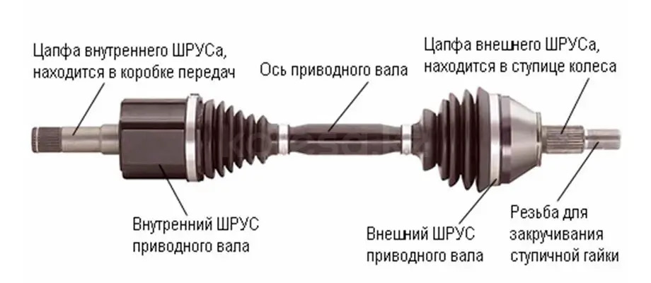 В автомобиле ШРУСы бывают внешние (наружные) и внутренние.