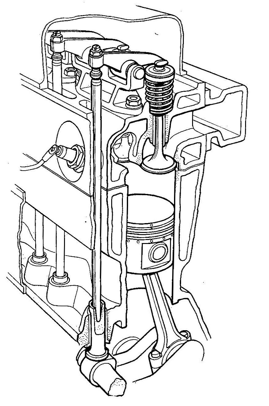 Механизм привода клапанов в случае схемы OHV получается самым длинным по сравнению с остальными вариантами